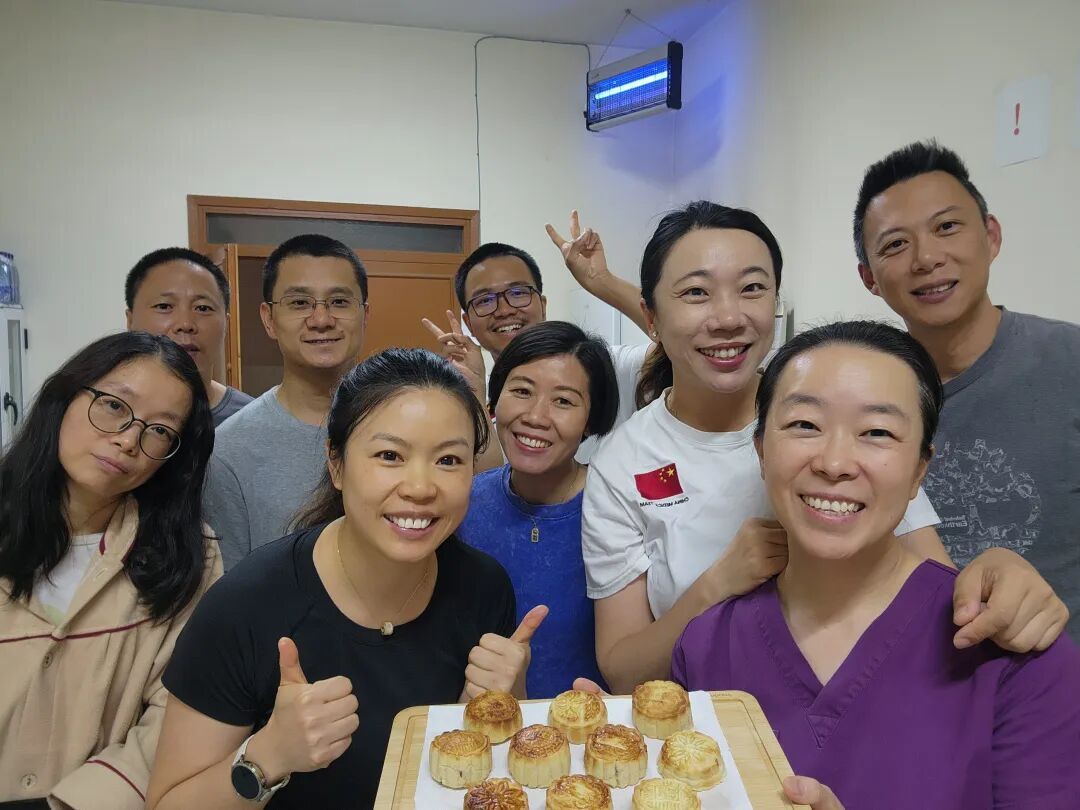 时光荏苒,岁月如流。我们12名队员在北非这片土地上已经度过了10个多月的时光,窗外的风景从初来时的陌生新奇渐渐变成了日常的熟悉。当手机里企业微信跳出医院食堂一年一度的月饼广告时,我们才发现:举国同庆的国庆和象征团圆的中秋佳节到了。