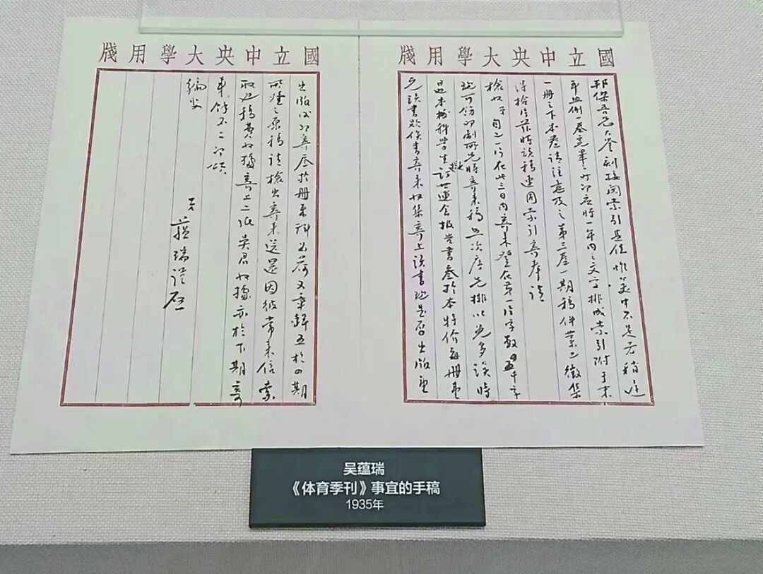 这份精神的源头,可追溯至首任院(校)长吴蕴瑞的远见卓识。1935年,他亲笔撰写的《体育季刊》刊发事宜的手稿,如今已成为博物馆的珍贵馆藏。