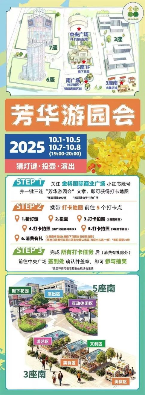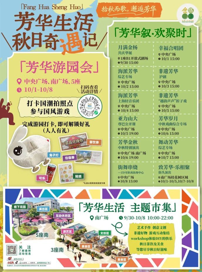 10月1日至8日,金桥国际商业广场举办芳华游园会,以中国传统文化中“花”与中秋元素开展互动、游戏、体验、角色扮演等一系列游园体验活动。