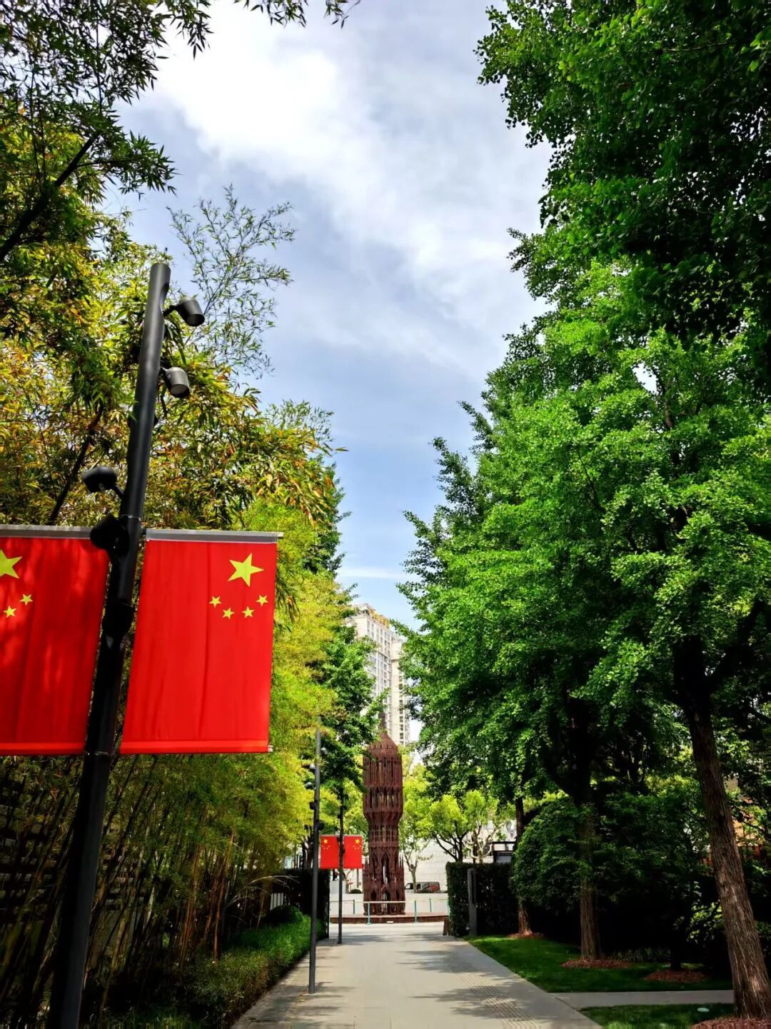 ▲国庆前夕的静安雕塑公园,雕塑《通向未来》