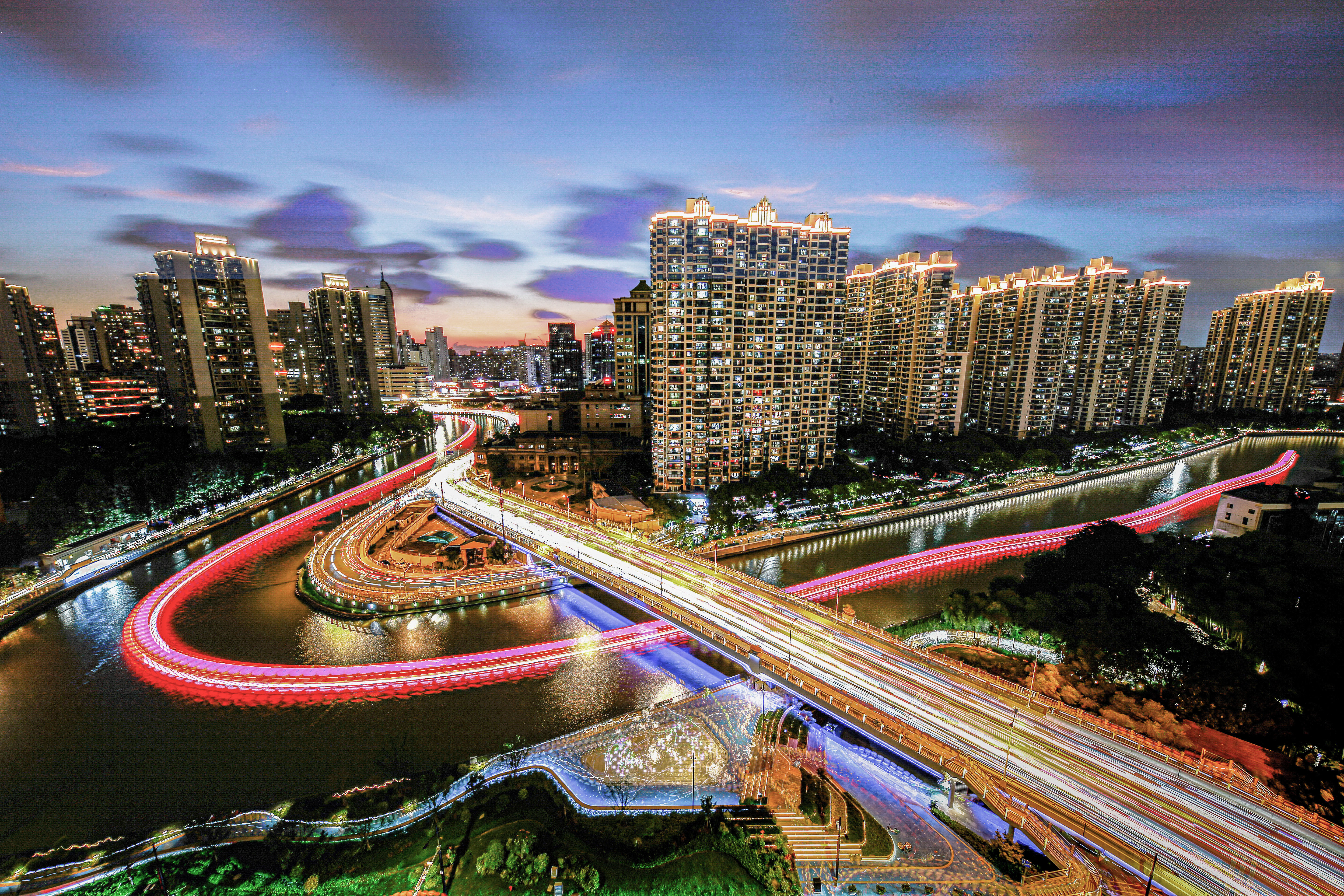 中环线金沙江路真北路交汇处,是拍出“城市脉动”的好地方。傍晚时分,天桥上的慢门摄影能让车流化作光影绸带。