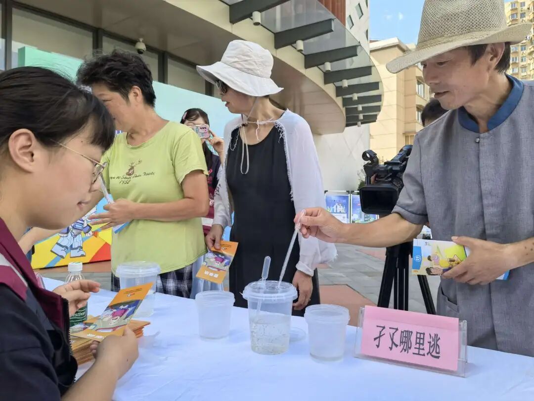 现场设置的互动体验区更是人气高涨。“问题扭蛋”环节,市民通过回答藏在扭蛋中的防病小问题,巩固了所学知识;“孑孓哪里逃”游戏则让大家直观了解了蚊虫幼虫的形态与孳生环境;“防护好好,蚊子不咬”互动环节,通过模拟场景,指导居民正确使用驱蚊产品。值得一提的是,现场还特别设置了活体蚊子和孑孓展示箱,让市民能够“零距离”观察,更深刻地认识到清除积水、从源头灭蚊的重要性。