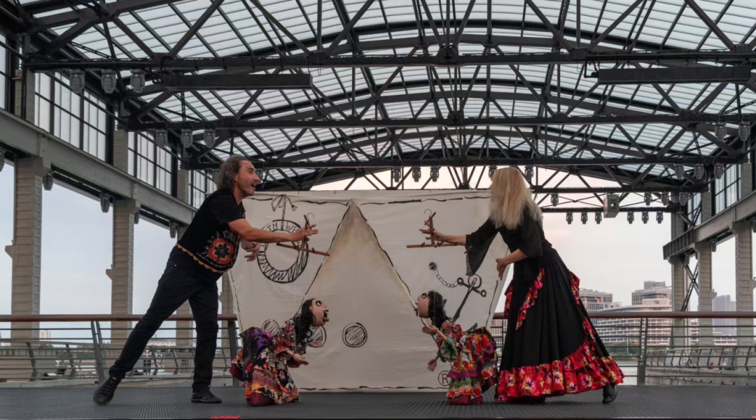 10月6日中秋节当天,“唐韵中秋”系列活动高潮迭起。17时许,西岸梦中心船坞码头率先拉开夜间欢乐序幕。德国第五车轮剧团带来的轻喜偶剧《西部牛仔》准时开演,身着牛仔服饰的人偶随着欢快的旋律蹦跳,时而俏皮甩动帽檐,时而与台下观众挥手互动。孩子们趴在栏杆上看得入迷,不时发出清脆笑声;成年人则举着手机记录,将人偶与码头江景同框,露天场地的轻松氛围感染着在场的每一个人。“第一次在江边看国外偶剧,风里都带着热闹的节日味儿!”家住徐汇的市民唐先生笑着说,作为周边居民,自己经常享受西岸的松弛与惬意,而这些文艺活动更是丰富了自己的业余生活。