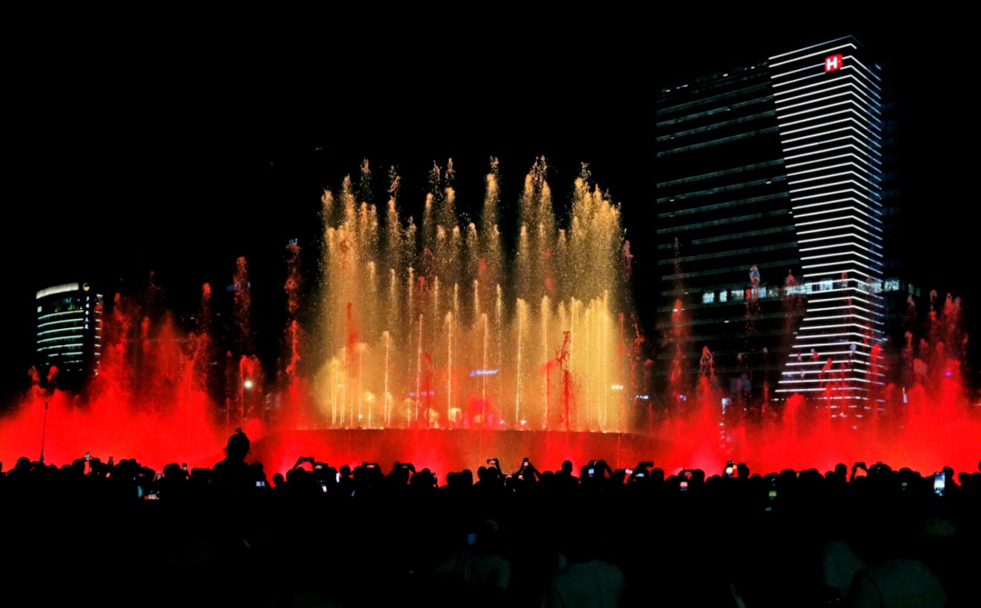 大宁公园音乐喷泉秀焕新归来,呈现出“水火相融、泉焰交辉”的壮丽景观,将现场观众的热情瞬间点燃。