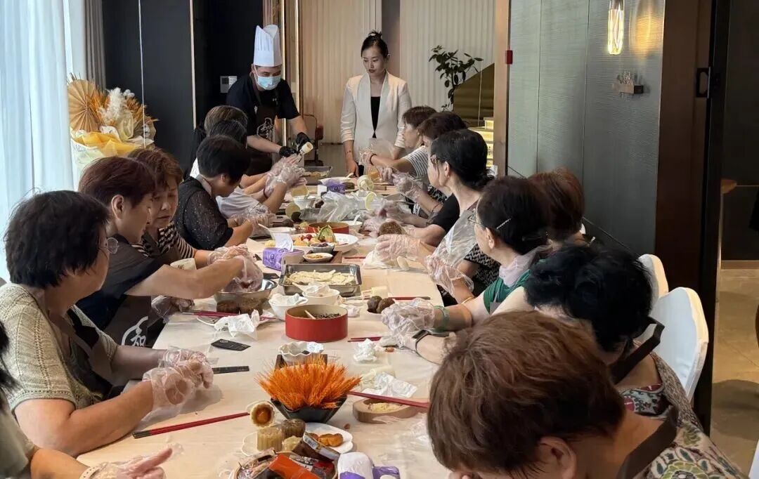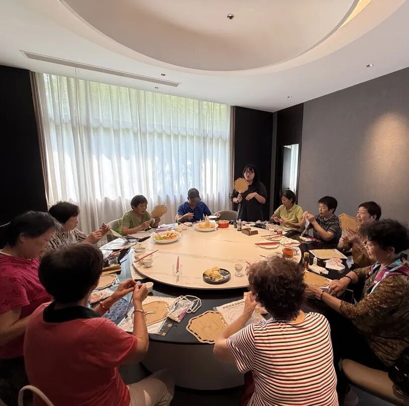 现场简直不要太热闹!揉面、包馅、压模……一枚枚精致的月饼承载着对传统节日的祝福。而宋锦珍珠团扇制作则让大家体验了非遗技艺的细腻与雅致,一针一线间,皆是匠心与情谊的交织。