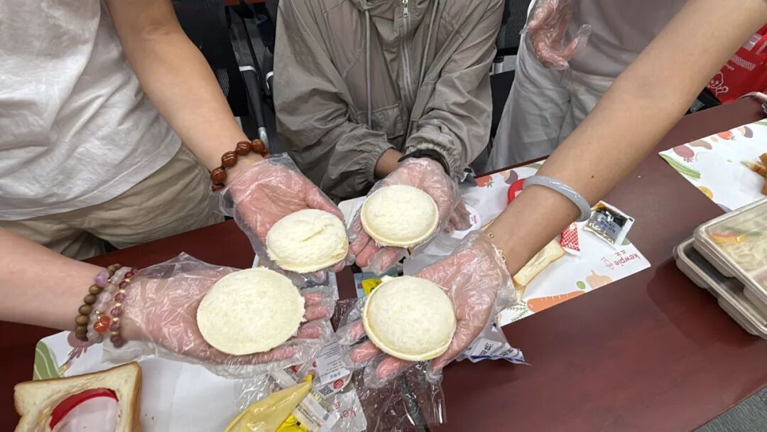 参与者们兴致勃勃地动手实践,从缤纷色拉轻食餐,到创意十足的鸡蛋沙拉三明治制作,每一个步骤都藏着巧思与节日心意。调味、搅拌间,欢声笑语与食材香气交织,尽显热闹温情。