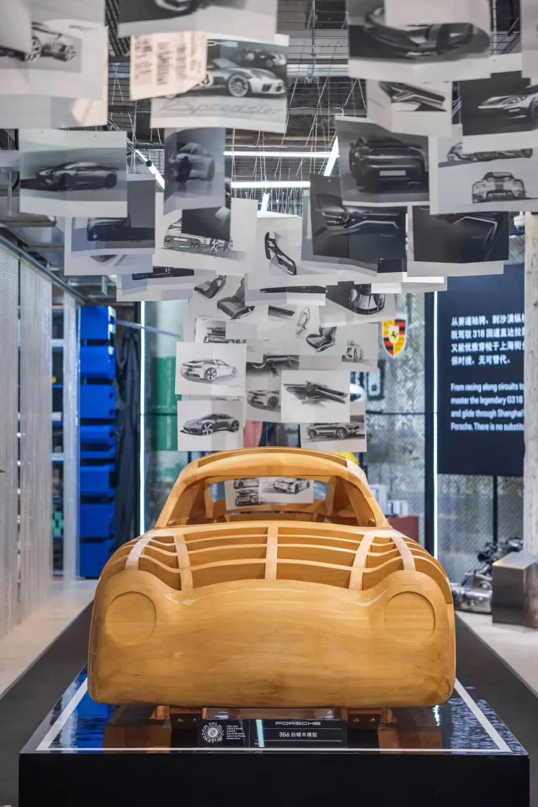 在“梦想工坊”,经典Fuchs轮毂、帕夏图案与等元素被巧妙融入艺术设计,展现着保时捷个性化定制的无限可能。现场以白蜡木模型展示1948年用于打造首辆356的车身框架,见证保时捷设计与工艺的起源,悬挂起的设计草图展现美学与匠心。“时光剪影”区域通过四大篇章,系统回溯了保时捷从创始至今的发展轨迹,其中复刻的在华二十余载珍贵记忆,让中国观众倍感亲切。