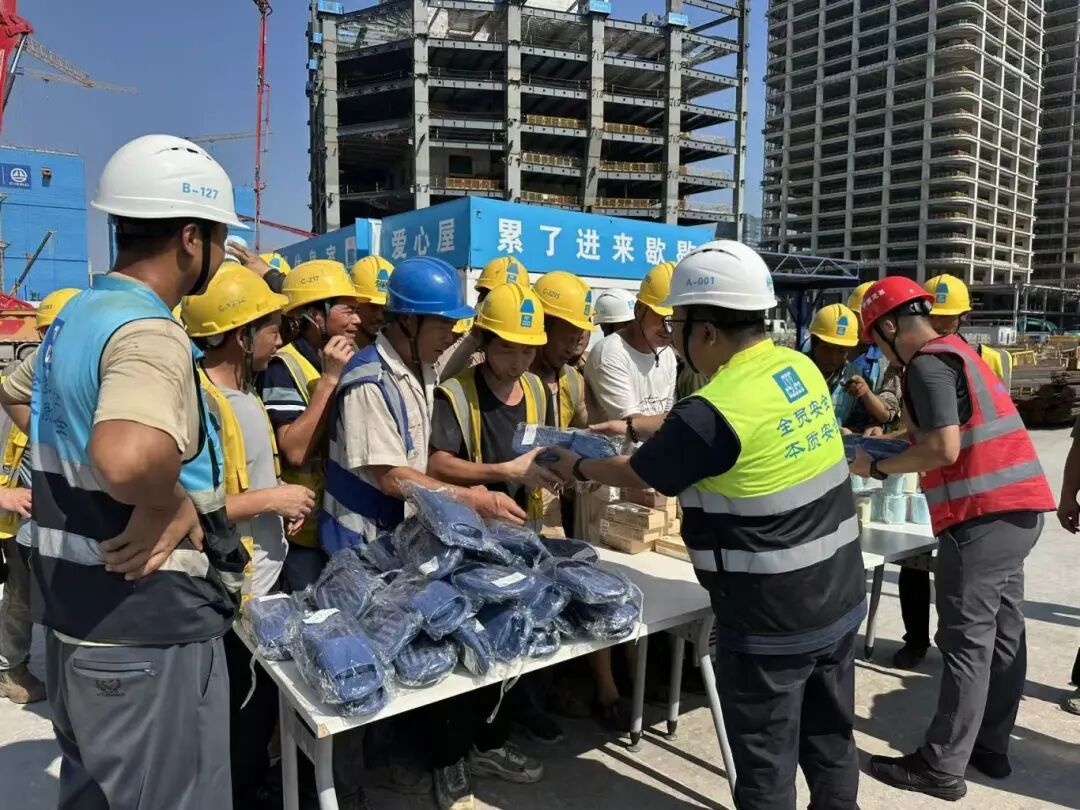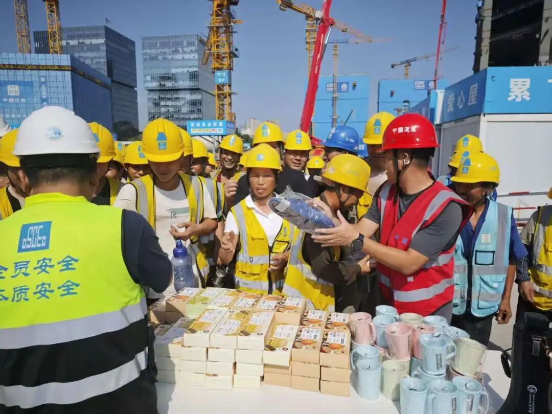 10月6日中秋节当天,为了给建设者们“回家”的感觉,项目联合滨江建设者之家党群服务站,为一线建设者发放中秋福利,将月饼和茶杯、拖鞋等生活用品与“爱”打包在一起,送到700多名一线建设者们手中。
