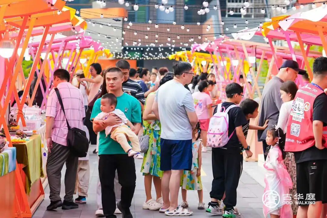 绕过回廊,古华园湖西侧忽然安静。一轮“盈月”悬于水面,云影、灯影、波光交织。情侣并肩低语,亲子倚栏赏月,远处茶座飘来桂花乌龙的热香。老板把灯串调至最暗,只留一抹暖黄,像给夜色盖上薄被。此刻无倒计时、无打卡任务,只剩月光与呼吸同频。 灯街尽头连接古华庭步行街。手工团子揭笼,白雾携甜香扑鼻;茶饮店把桌椅搬到门口,桂月拿铁杯口插一小枝丹桂,端在手里如捧一轮“迷你月”;童装橱窗,“嫦娥裙”在灯带映衬下闪闪发光。商户们说,生意热闹固然欣喜,更珍贵的是“过节那股热乎气儿”。