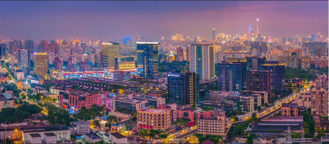高楼大厦林立,灯火璀璨,在暮色笼罩下,城市仿佛被点亮的星河,尽显现代都市的活力与繁荣。