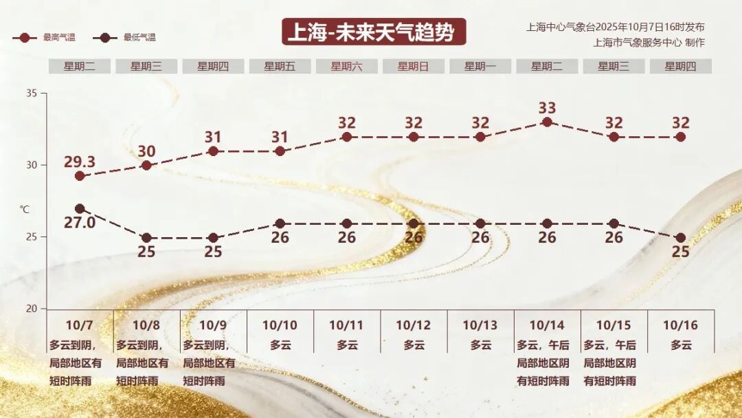 受东风气流影响,最近的天气格局会一直延续到9日上班第一天,多云到阴的天气为主,局部有短时阵雨,但对出行影响不大。周五起天气转好,气温略有上升,最高气温在31-32℃附近。
