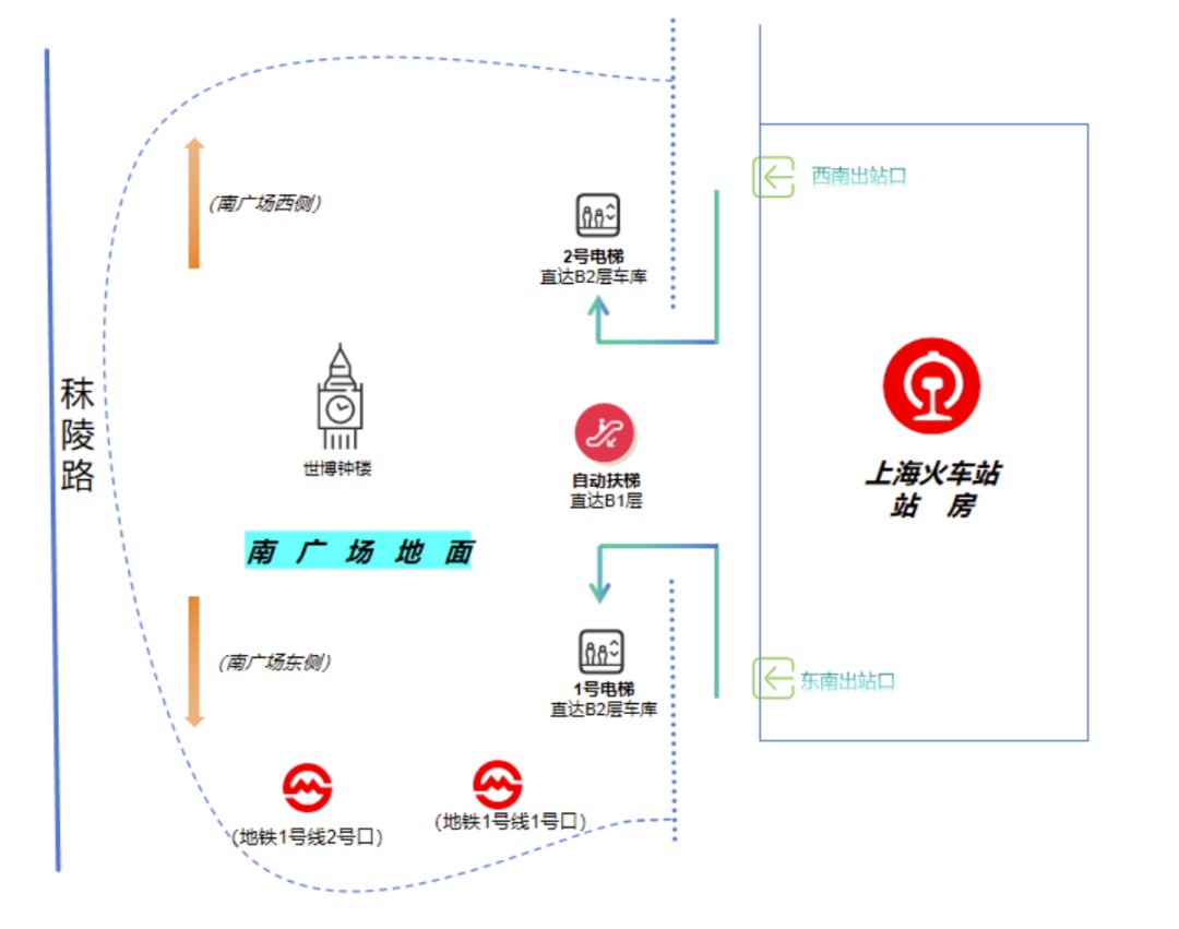 如果您需要到上海站南广场,请从上海站东南出站口、西南出站口出站。