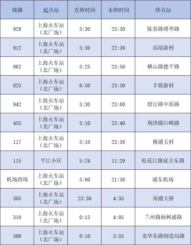 上海火车站站(始发站)的定点加班车共有4班,发车时间预计为23:15、23:30、23:45、次日凌晨00:00,实际发车时间以现场调度为准。
