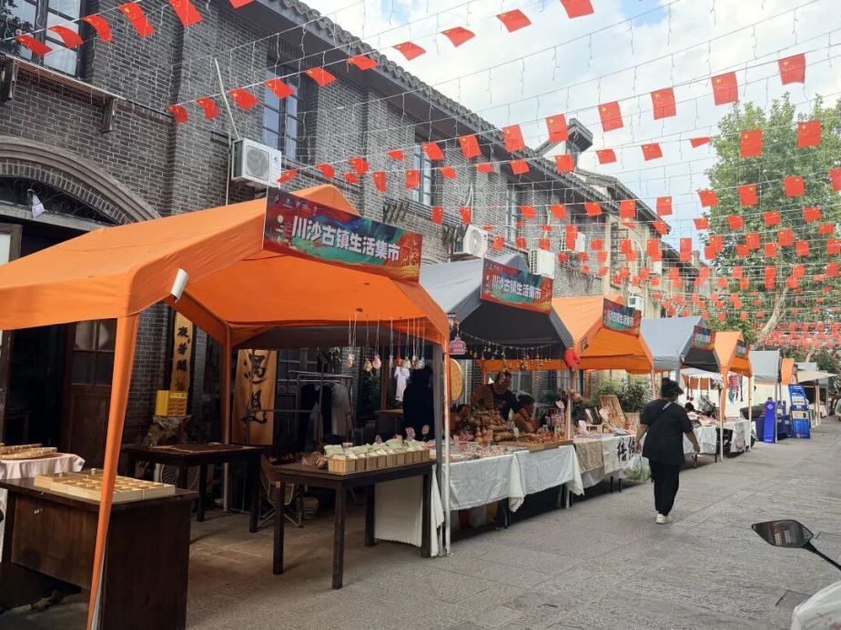 国庆长假期间,川沙古镇以“古镇承文脉·双节共欢庆”为主题,打造集手作体验、互动玩乐与文化展演于一体的生活集市,传递浓厚的家国情怀与团圆暖意,更吸引了众多游客居民前来打卡,欢度佳节。