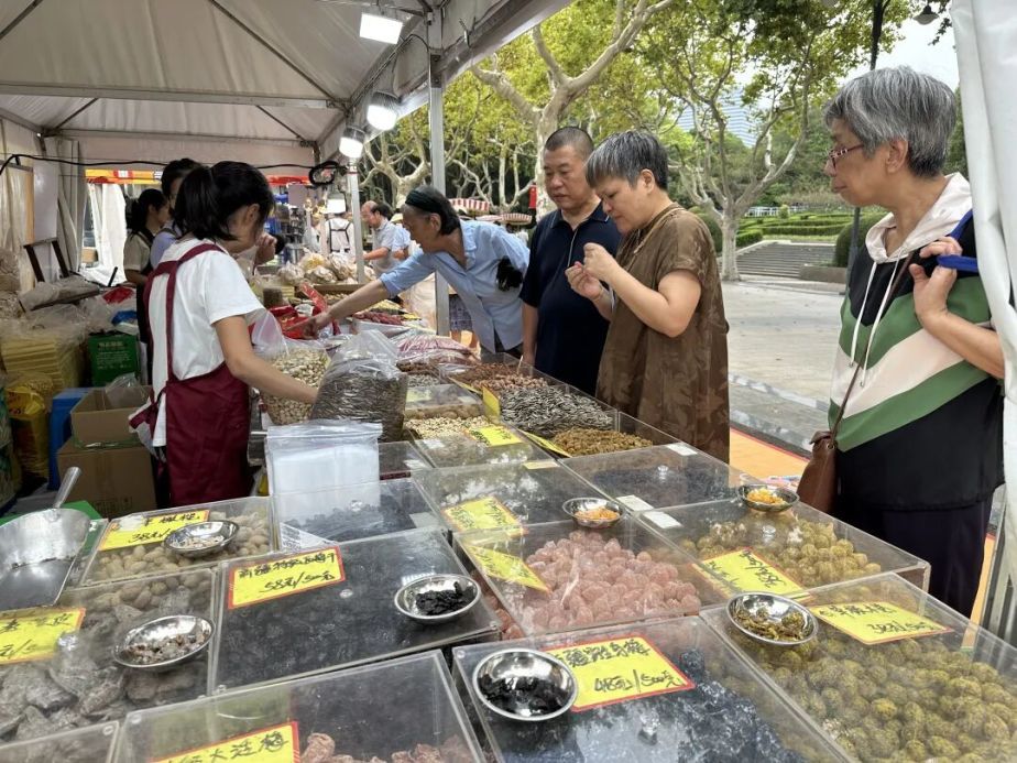 市民曾榕雨慕名而来,对这场生活集市赞不绝口。“不仅是中秋,还融合了国庆,在中秋佳节里逛一下古镇,非常有声有色。”她说,“这边的街区布置、摊位摆设和环境氛围都很好,我还买了香包,体验了特色小食。”