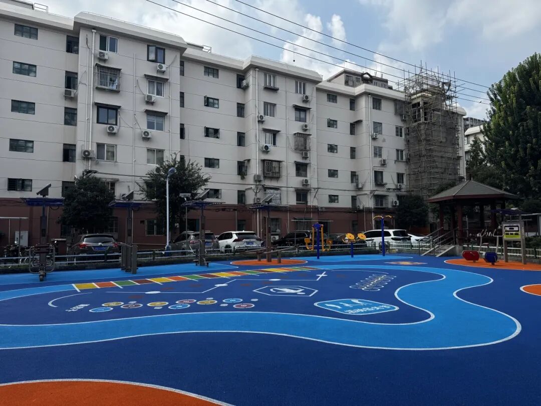 明快的蓝橙色塑胶地面上,一岁萌娃兴奋地咿呀学步;椭圆机上阿姨缓步慢行,老伯和小伙子在健身车上较劲,谁也不愿服输。在开鲁二村健身苑点,曾经设施老化的社区角落,如今已成为居民日常锻炼的热门去处。器材数量虽不多,但功能齐全,十余种全新设备满足全年龄段多元需求,个性化游乐区还融入了老上海人熟悉的弄堂游戏元素。“孩子玩得安全,我们老人也能活动筋骨,这改造真是改到我们心坎里了!”居民王女士感慨。