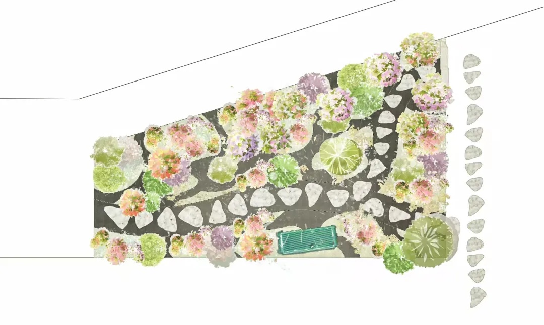 居民议事会上,天华学院的学生们拿出设计效果图时,居民们都眼前一亮。错落的花卉色彩层次丰富,蜿蜒的石子路穿梭其间,颇具艺术气息,完全契合了居民们的期待。