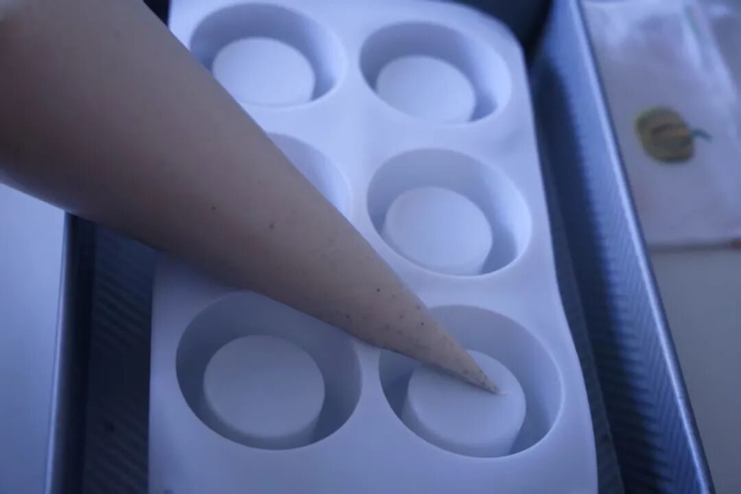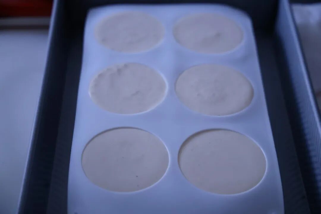 6.装入裱花袋,挤入硅胶模具,震平后放入冰箱冷冻5小时以上。