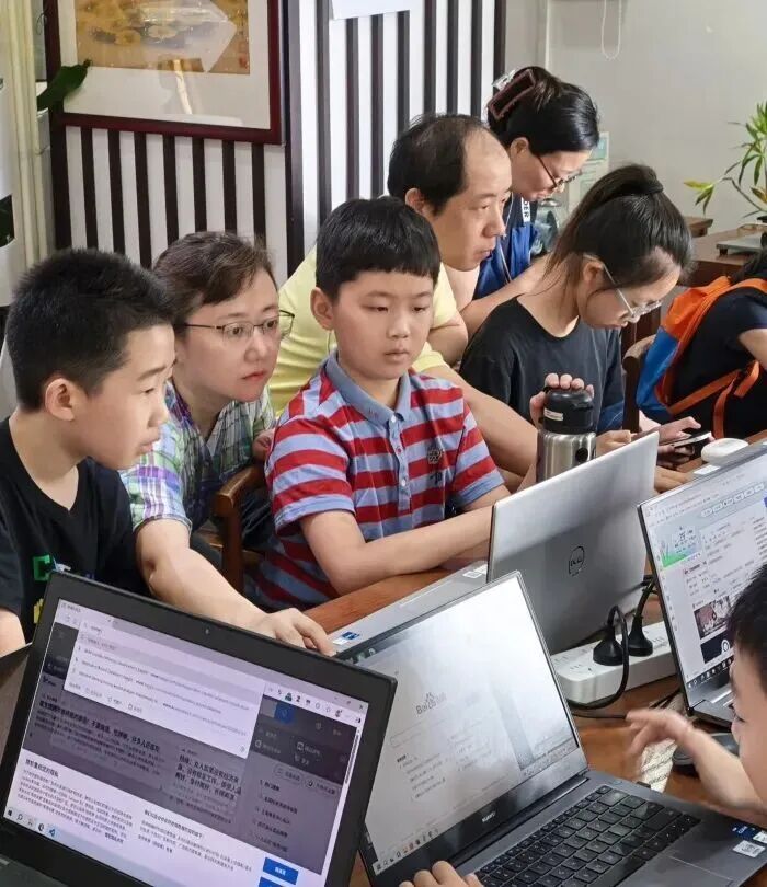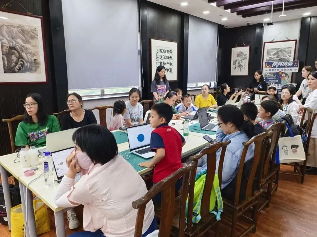 老师首先引导学员们利用AI生成自己独一无二的图案——每个人仅凭想象和描述,就与AI共创出了专属艺术图样,科技的魔力让小朋友连连称奇。
