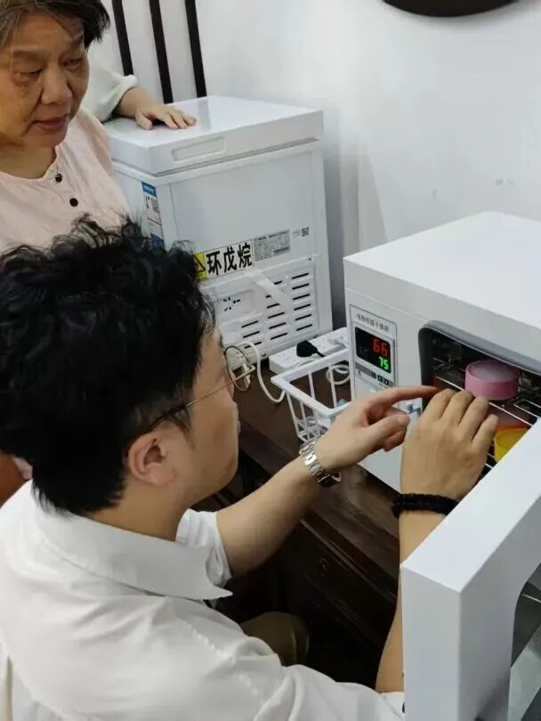 紧接着进入模具制作环节:学员们在老师的指导下,亲手调配硅胶材料,细心灌注进3D打印好的模型之中。送入烘干箱中等待片刻,硅胶逐渐凝固成型,一个个可爱又独特的“月饼模具”就这样诞生啦!