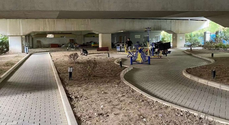 东波路赵家沟桥下空间原先道路两侧封堵,光线较暗,场地环境较差,人行道、绿化均有不同程度破损。本次改造通过专业的空间规划设计,优化绿化、硬化地面、安装健身器械,最大程度地发挥了桥下空间的潜力。
