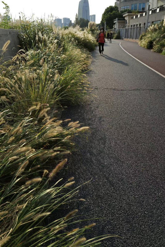 随着气候转凉,黄浦滨江沿线的绿化带里亮点多多。