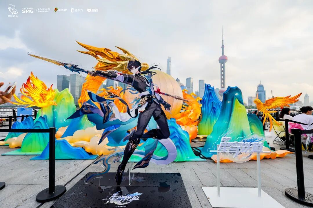 10月2日至8日,超动感·北外滩次元音乐嘉年华在北外滩国客中心码头举行。米哈游旗下《崩坏:星穹铁道》的展台前,一条鎏金巨龙与丹恒・腾荒组成的“金龙照月圆”装置,成了不少游戏玩家的热门“打卡点”。