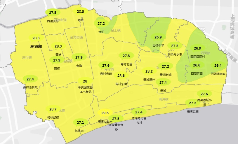 “奉贤的凉爽气候,得益于其滨江临海的区位优势,海洋发挥了显著的调节作用。同时,区内绿化覆盖率位居全市前列、热岛效应影响小。此外,黄浦江涵养林、申亚片林等大型生态林地,以及杭州湾与黄浦江的岸线资源,共同构成了持续向好的生态本底,进一步起到调节气温的作用。”奉贤区气象台台长徐佳介绍道。