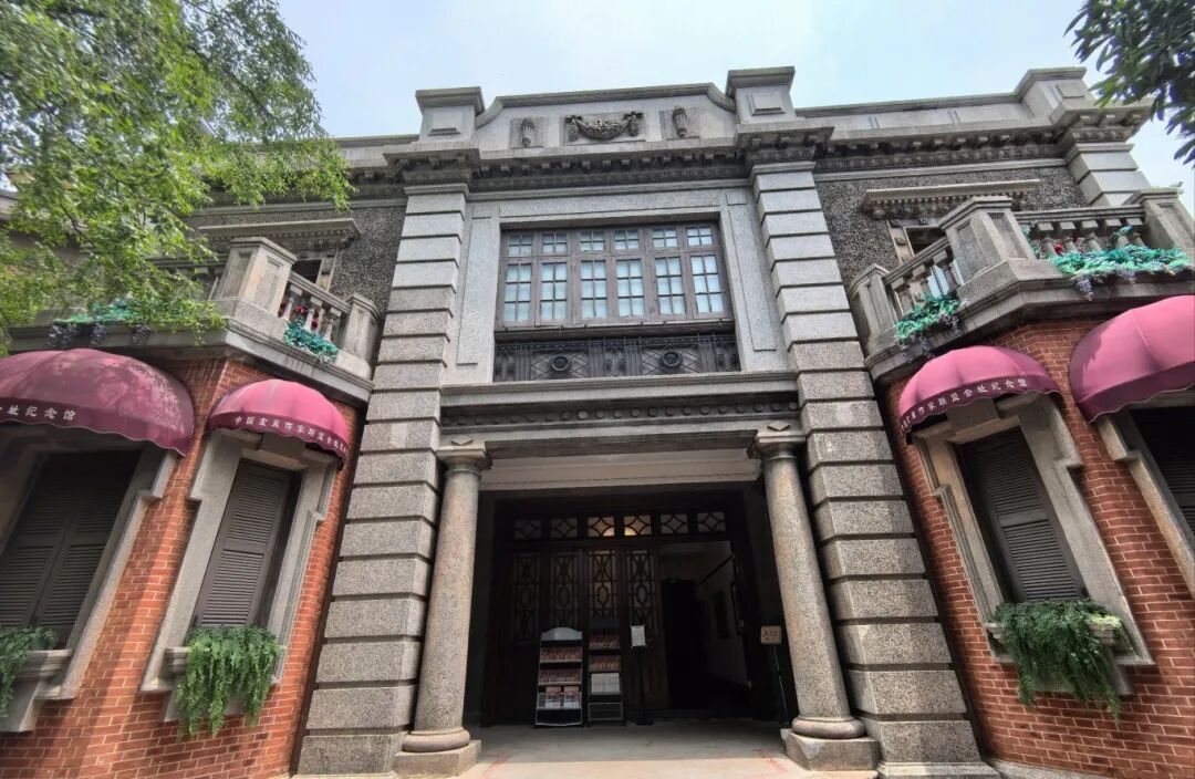 左联会址纪念馆是一幢1924年建成的英式新古典主义风格建筑。三层的清水墙砖木结构,沿街立面山墙呈优美的曲线,南立面横三段处理手法,比例构图严谨,阳台立面对称,细节之处尽显建筑美学。