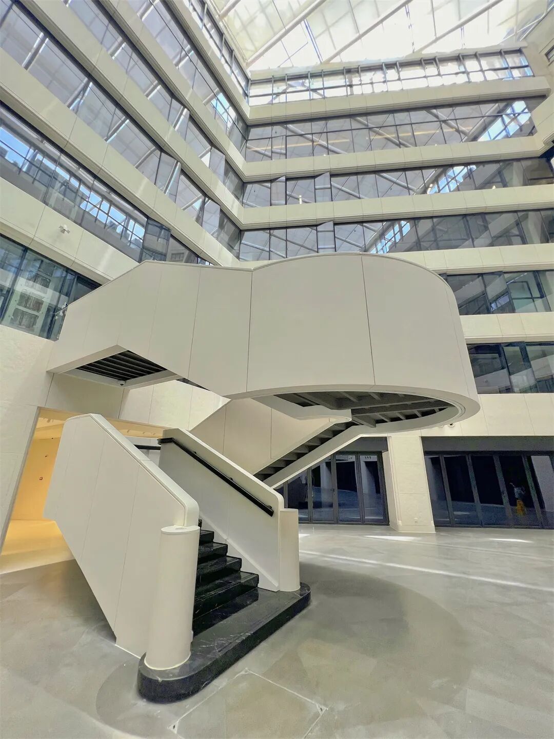 德邻公寓建筑坐北朝南,立面采用水平划分设计,底层平拱门配仿石饰面,东南转角处褐色耐火砖与白色钢窗形成鲜明对比。五层顶部设红色仿石券装饰,檐口采用西班牙风格几何纹样,西南部转角作抹角处理,西北部转角呈弧形曲面。