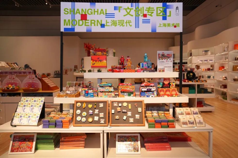 十月柿子成熟,新品“柿柿如意”茶具套装采用釉下五彩工艺,在器型上绘有柿子图样。Q萌的“画好月圆”原创白瓷杯系列,寓意“花好月圆人长久,幸福美满共此生”。“上海现代”主题文创同样圈粉无数,展览同款怀旧铁皮玩具、创意盲盒,以及融入老上海元素的冰箱贴等产品,尤其受游客青睐。游客蒋女士在文创区选购时说:““铁皮不倒翁特别戳人,我们80后小时候有一模一样的玩具!”