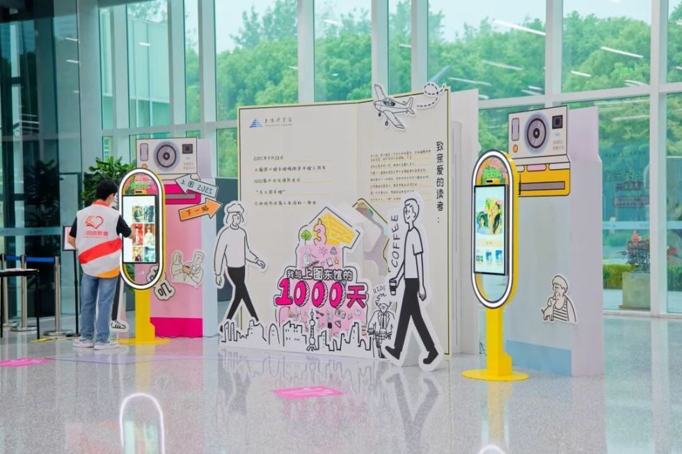 在上海图书馆东馆1楼中庭设有“东馆开馆三周年”打卡装置,吸引读者前来进行AI拍照互动打卡,分享与东馆的“心动”瞬间。社交平台上,就已有不少读者的留言。读者“FRANK”说:“之前是我自己去东馆,现在有宝宝了,我带着宝宝一起去东馆。”网友“永远记得星光”说:“这1000天里我看着上图东馆各种设施越来越完善,还有丰富多彩的活动与展览,真的愈发喜爱这里。”