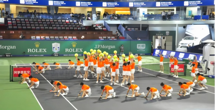 强恕宝贝网球操队在大师赛现场表演
