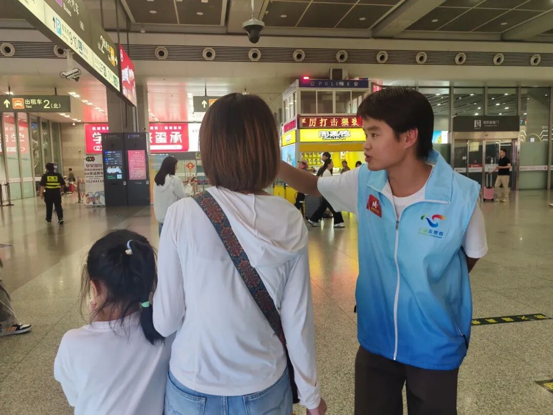 一位旅客匆匆赶到虹桥枢纽,眼看高铁发车时间临近,却因不熟悉枢纽布局,在偌大的大厅里找不到对应的进站口,急得满头大汗。正在一旁服务的闵行区文化和旅游管理事务中心的孟宪威见状,立即上前询问其车次信息,随后快速查看站内指引图,明确了该车次的检票口位置。他带领着焦急的旅客,朝着最近的扶梯跑去,一边告知:“您从这里上二楼,左转就能看到对应的检票口,快去吧,还来得及!”在孟宪威的指引下,旅客一路小跑顺利进站,临走时还不忘回头挥手致谢。