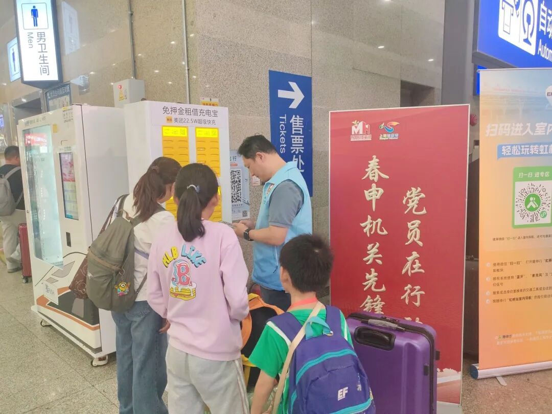 一位旅客在虹桥枢纽换乘时手机突然没电关机,联系不上前来接站的家人,急得在原地团团转。正在现场值守的机关干部王宇青看到后,立即上前安抚旅客情绪,并热情地询问情况。得知原因后,他带着旅客来到最近的共享充电宝租借点,耐心协助操作租借流程。“太感谢了,手机没电真是寸步难行,有您帮忙真是太好了!”旅客一边连接充电线,一边连声道谢,一个小小的共享充电宝化解了旅客的燃眉之急。