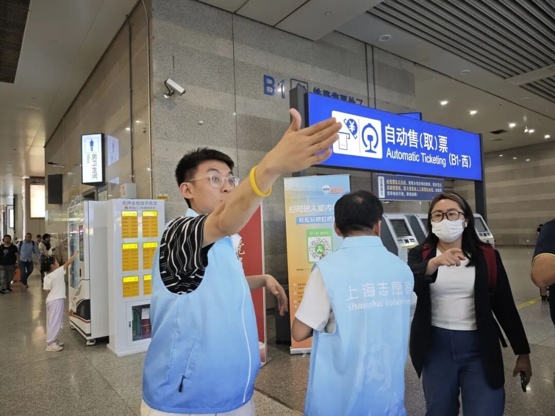 为全力保障国庆期间虹桥综合交通枢纽平稳有序运行,区区级机关工作党委、区委社会工作部等单位持续组织开展志愿者服务,闵行区区级机关志愿者坚守岗位,热忱接待,用他们的实际行动和满腔热情,温暖八方旅客。