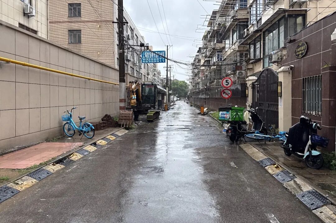 场中路609弄背街小巷总长约166米,沿线有汽车修理厂、快递中转站等,车流频繁。改造前路面为混凝土材质,因使用时间较长,出现裂缝、坑洼等问题,且雨污水排放不畅,导致道路经常积水。