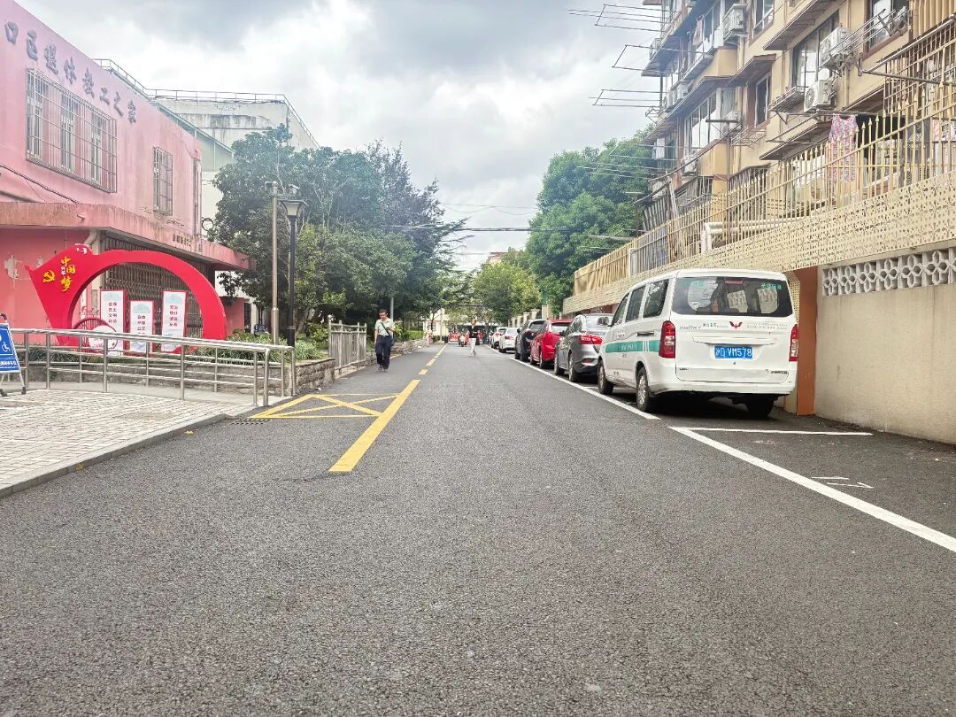此次改造对原路面进行铣刨加罩,改为沥青路面,提升了路面的平整度和舒适度。同时,结合属地街道和周边居民意见,适当调整人行道宽度,拓宽车行道,增加路边停车位,有效缓解周边居民的停车难题。