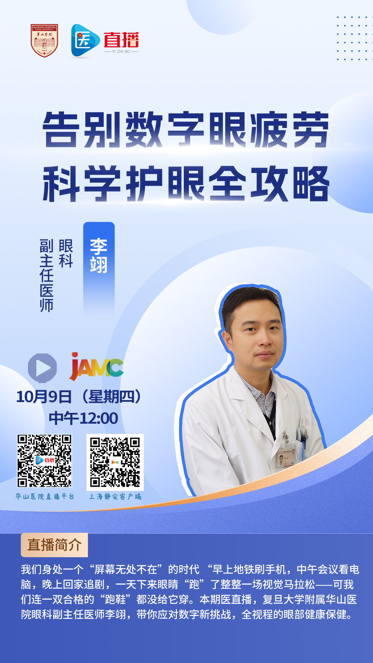我们身处一个“屏幕无处不在”的时代 “早上地铁刷手机,中午会议看电脑,晚上回家追剧,一天下来眼睛“跑”了整整一场视觉马拉松——可我们连一双合格的“跑鞋”都没给它穿。本期医直播,复旦大学附属华山医院眼科副主任医师李翊,带你应对数字新挑战,全视程的眼部健康保健。