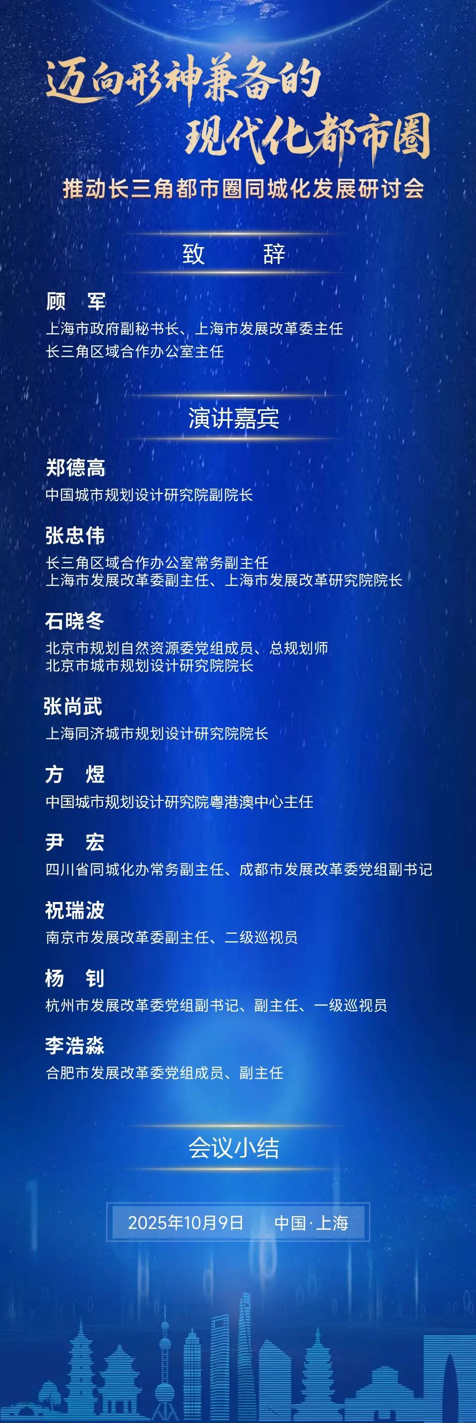 推动长三角都市圈同城化发展研讨会将于10月9日在沪举行,本次研讨的主题是迈向形神兼备的现代化都市圈。