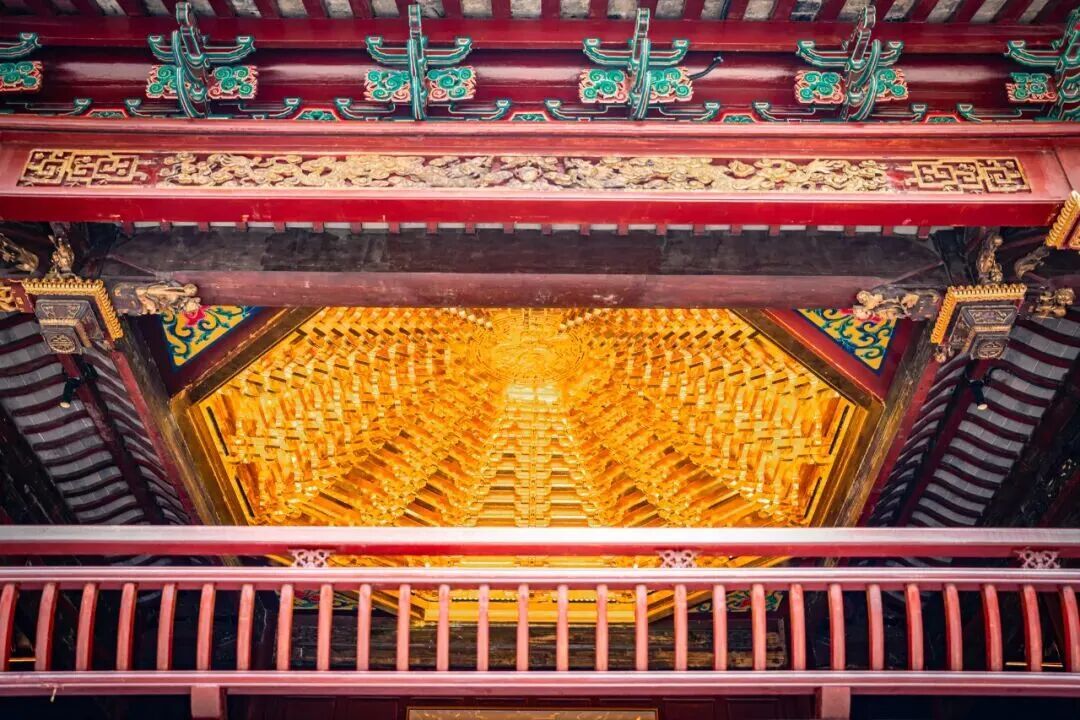 会馆自带上海地区第一座会馆戏台,那金光闪闪的漆画八角形藻井戏台,至今令人惊叹不已!