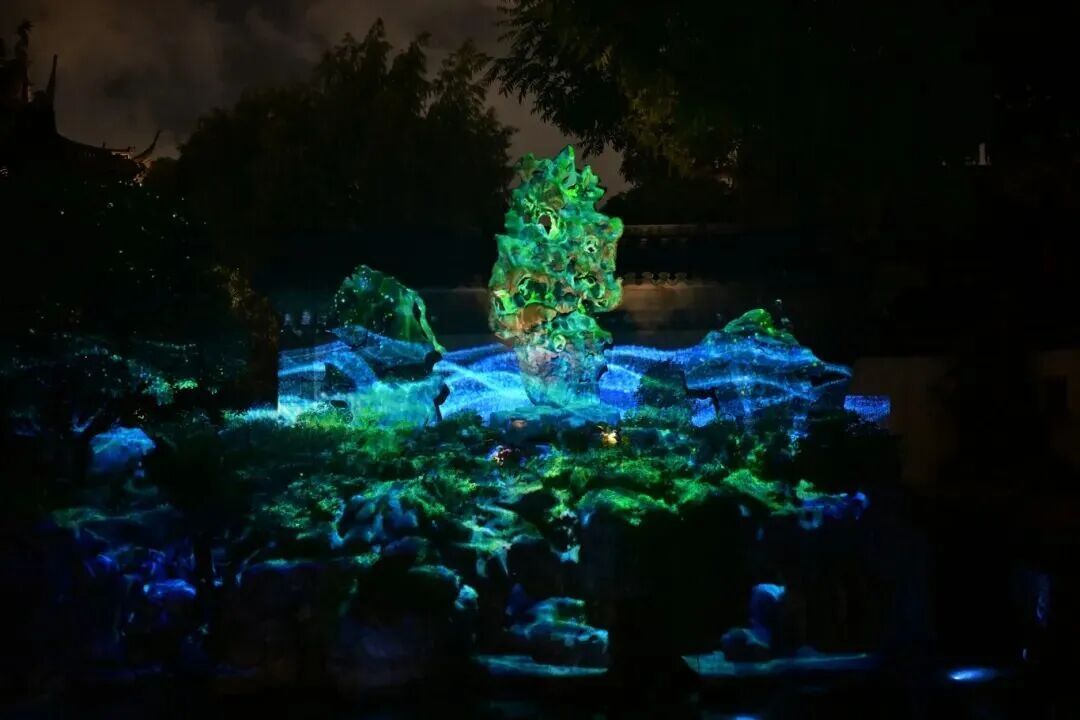 今年夏天,豫园首度对外开放夜游,以“豫享山林”为主题,化身一座流动的夜间实景博物馆。