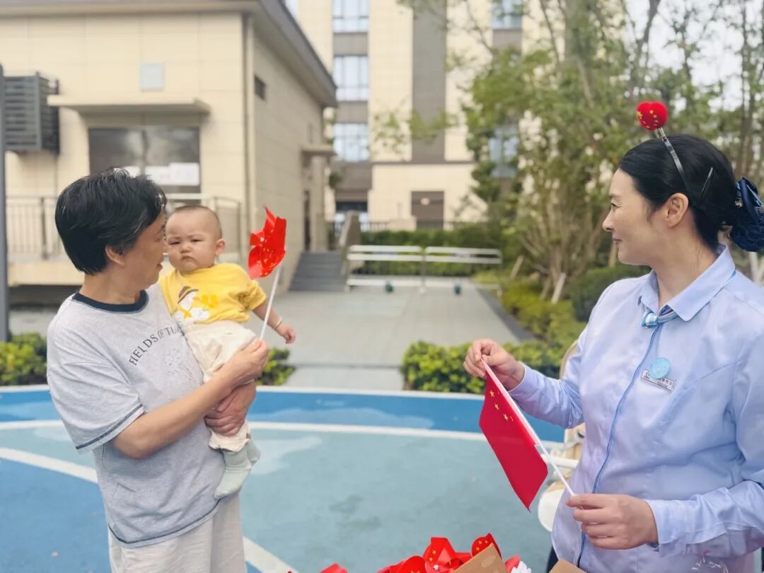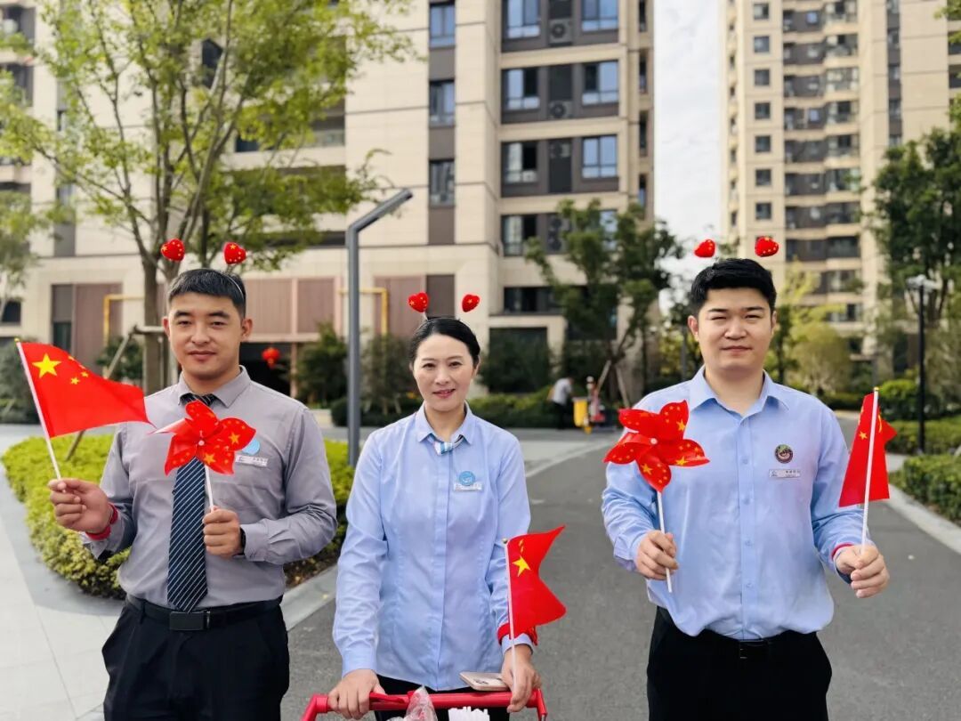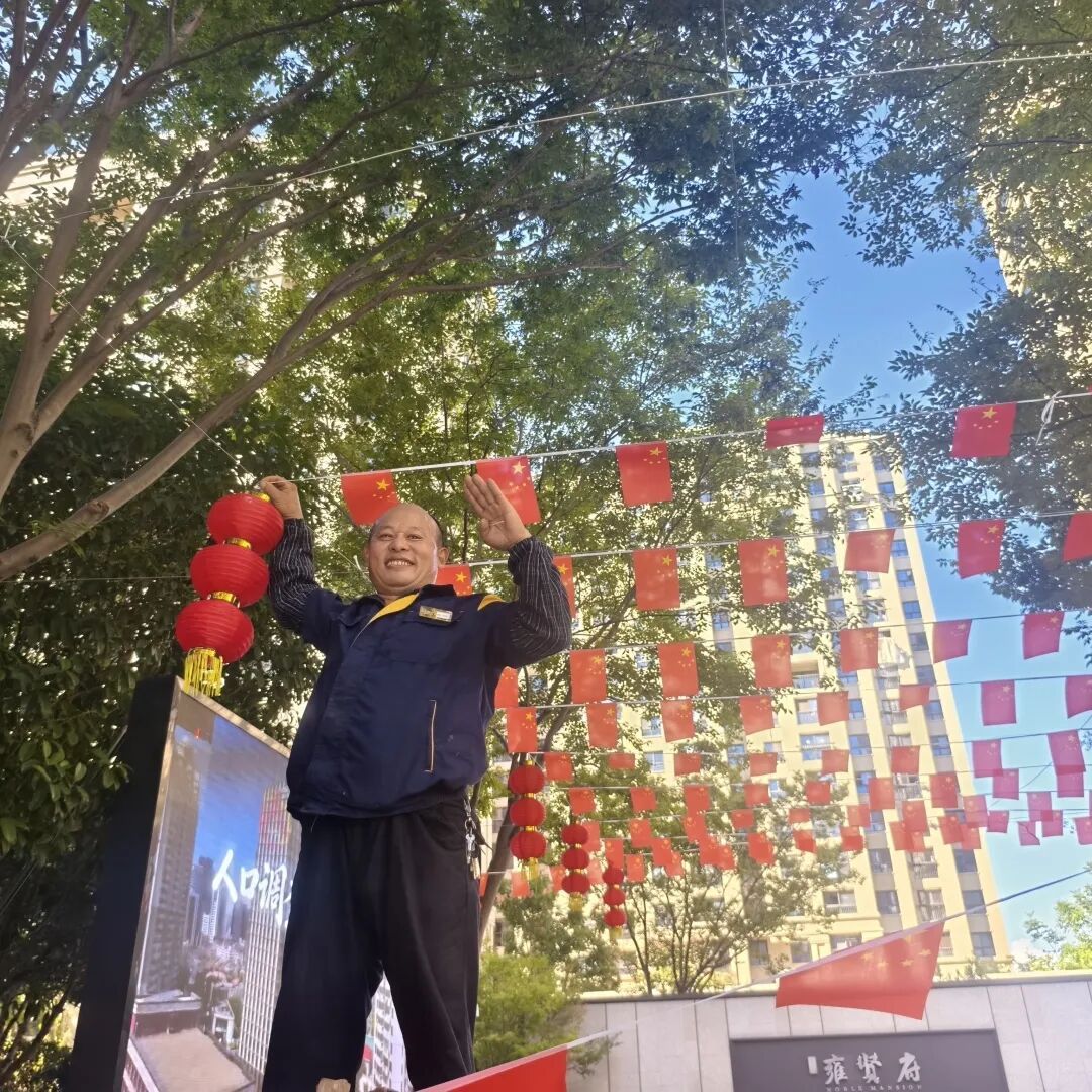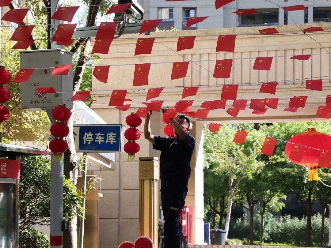 为了让社区洋溢节日气氛,物业团队提前策划,精心布置。保洁员们加班加点清扫社区公共区域,确保环境整洁;绿化工人修剪草坪、装点花坛,让小区焕然一新。国庆当天,物业还组织了社区活动,悬挂国旗、布置彩灯,为居民们营造了浓厚的节日氛围,居民小朋友们在干净整洁的活动广场上嬉戏,脸上洋溢着幸福的笑容。