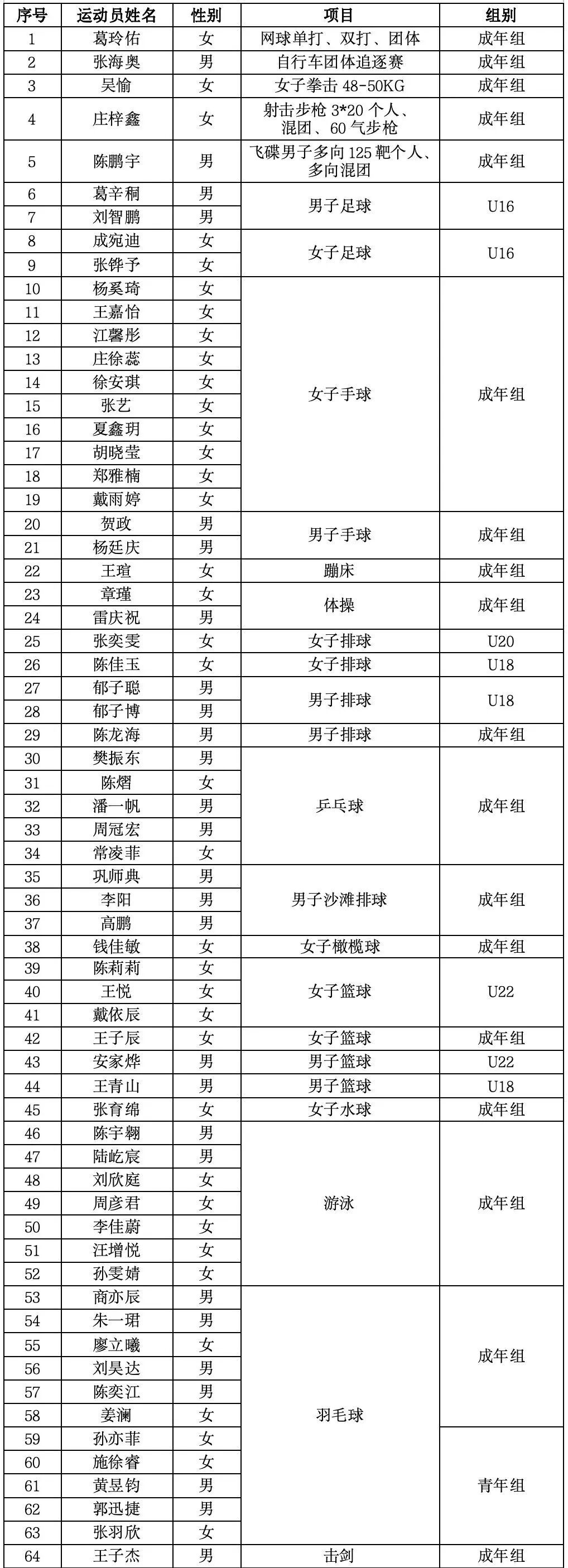 日前,第十五届全国运动会上海市代表团成立大会举行,杨浦区共有64名运动员入围决赛阶段,将参加乒乓球、拳击、击剑、游泳、足球、篮球、排球、手球、水球、羽毛球、网球、射击、橄榄球等16个大项的比赛。