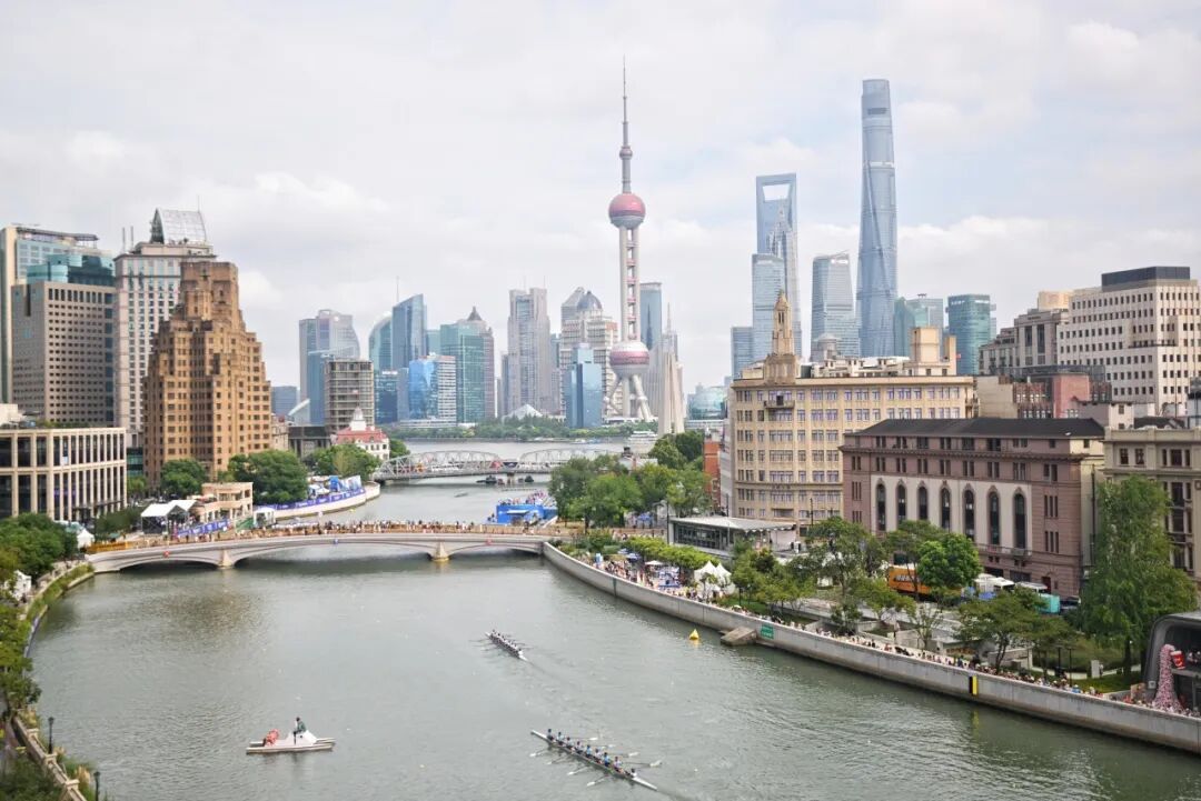 今年的“上艇”巧妙融入城市景观,运动员在碧波中奋进的身影,与陆家嘴天际线、外滩万国建筑群构成“世纪同框”的动人画面。虹口区精心设置的观赛区不仅提供最佳观赏视角,更通过“上艇创意工坊”等互动体验,让市民游客将独特的赛事记忆带回家。