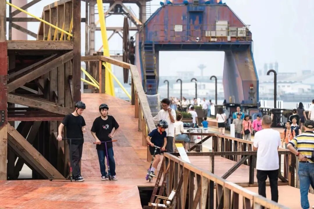 而这个国庆长假,复兴岛彻底换了 “画风”:船台公园、旧厂房改造的艺术空间、滑板公园与量子互动馆前,挤满了从浦东、浦西赶来的市民,单日最高客流突破一万人。
