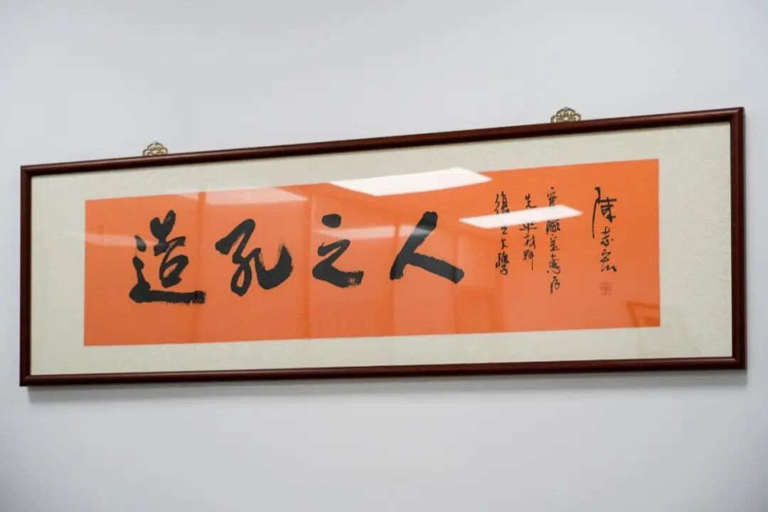 走进赵东元位于江湾校区先进材料楼的办公室,“造孔之人”四字书法作品当即“扑面”而来——横竖撇捺、挥洒自如,他在介孔材料领域的半生探索,就这样高度凝练成简单又不简单的四个字。