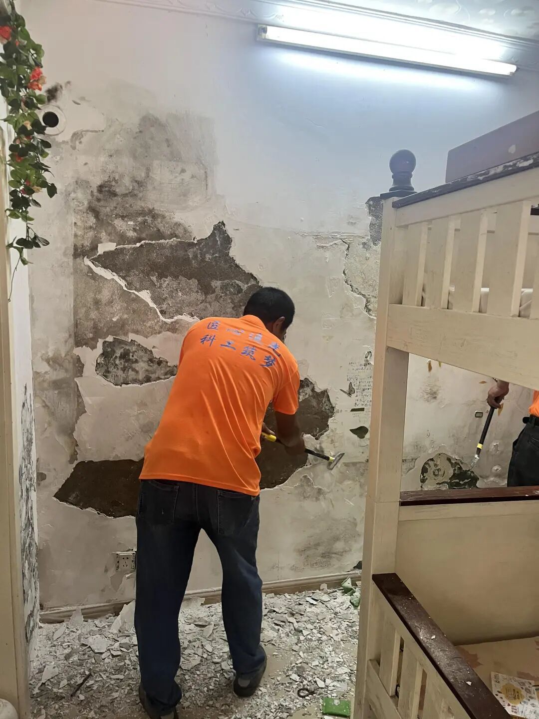施工首日,当搬开小王长期使用的高低床后,施工人员发现墙体存在大面积霉斑,正是房间霉味的主要来源。考虑到长期在潮湿、霉变环境中生活影响青少年健康,街道团工委立即会同监理方和施工方现场调整方案,重点解决墙体潮湿与防霉问题。施工过程中,不仅对墙面、顶面进行全面翻新,还特别采用防水材料与吸湿材质,从源头遏制霉变复发。
