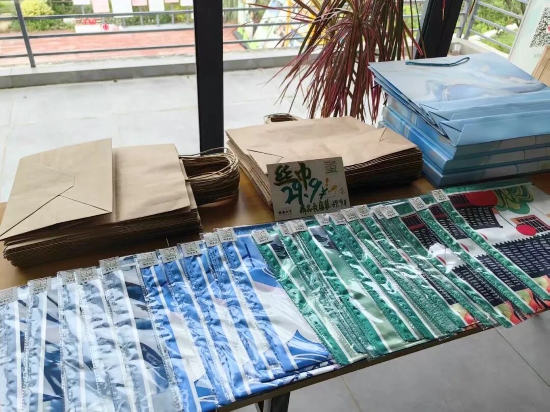 活动现场的另一端同样热闹非凡。团队成员将印有重固历史与自然风光的主题丝巾整齐陈列,向参观者细细讲解丝巾背后的文化故事——这不仅是可佩戴的装饰,更是能带走的“重固记忆” 。