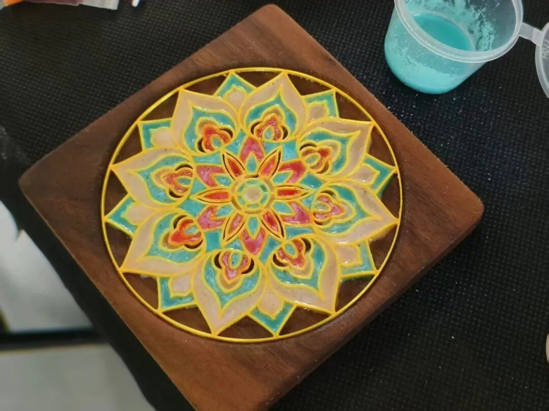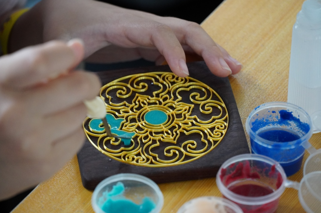 一个多小时后,多数参与者顺利完成珐琅作品的基础制作。精美的玉器纹样杯垫、充满乡土气息的稻田风光装饰挂件……一件件独一无二的作品新鲜“出炉”,参与者们满脸自豪地展示着自己的成果,成就感满满 。